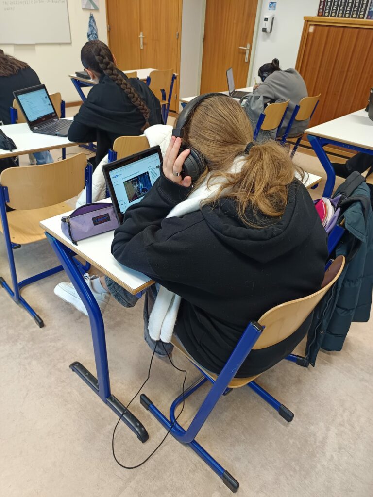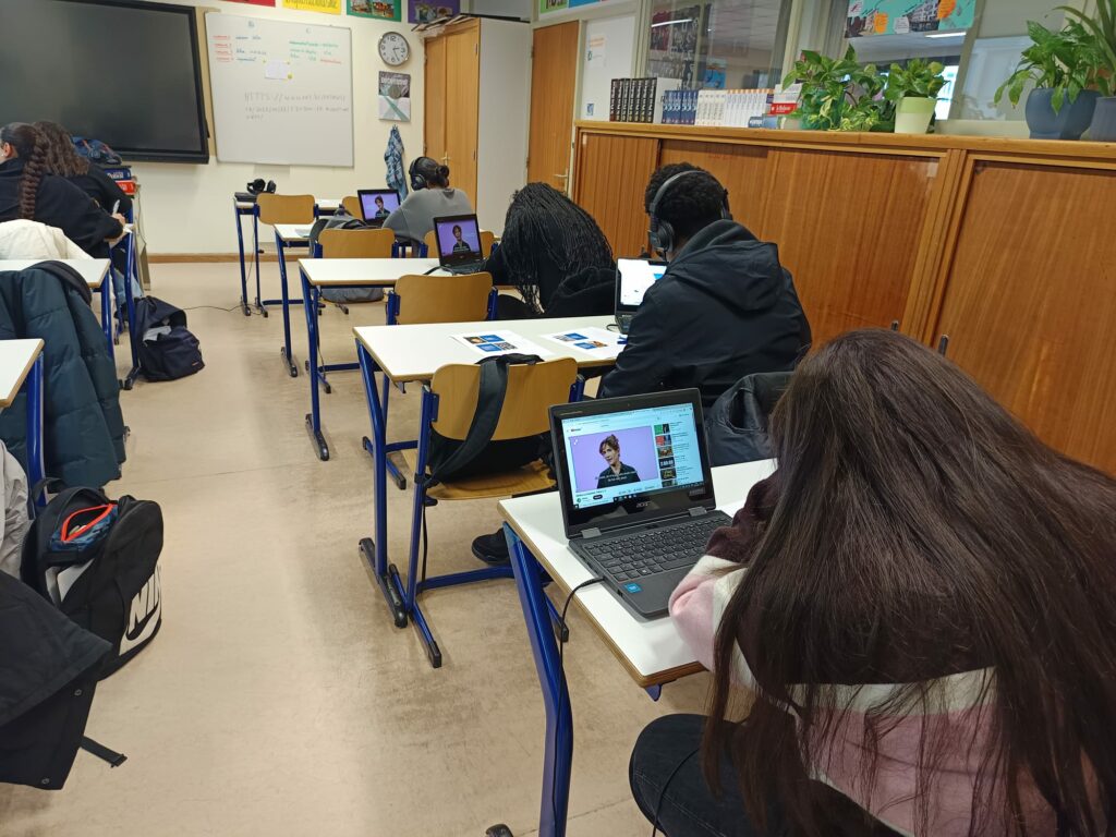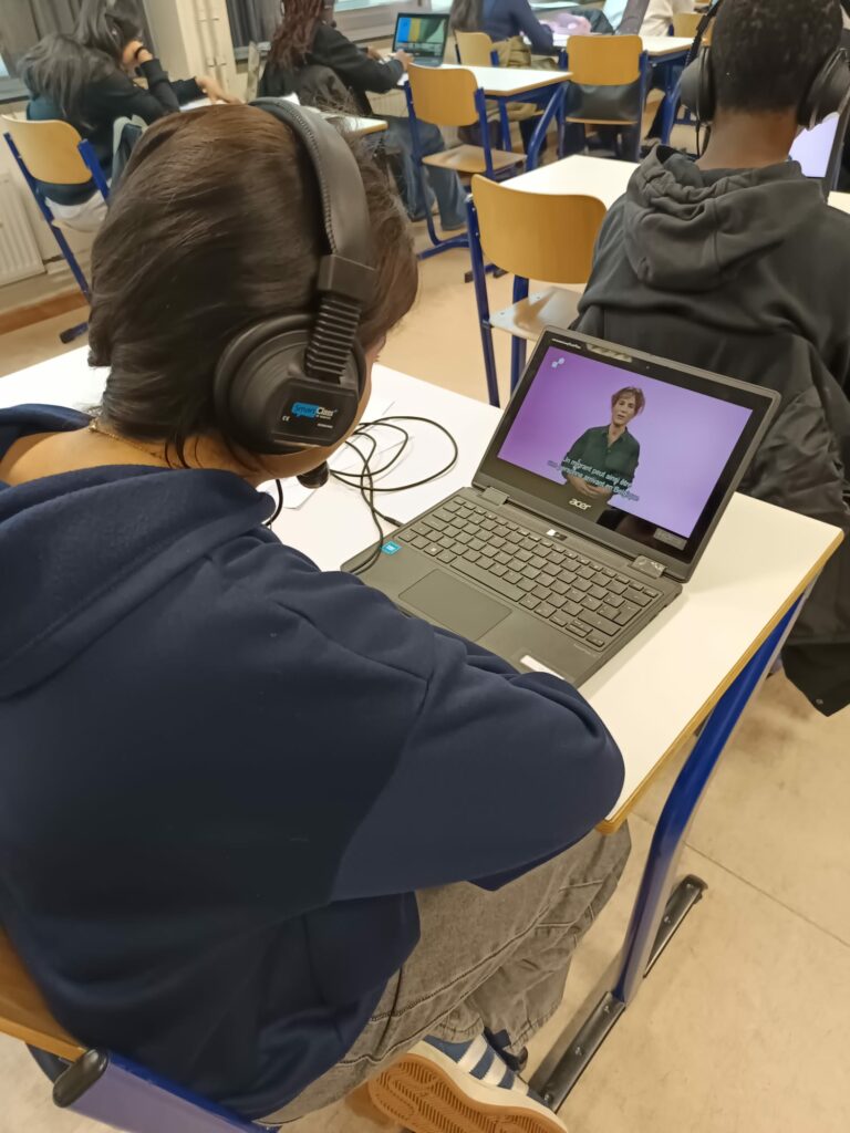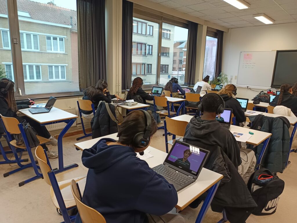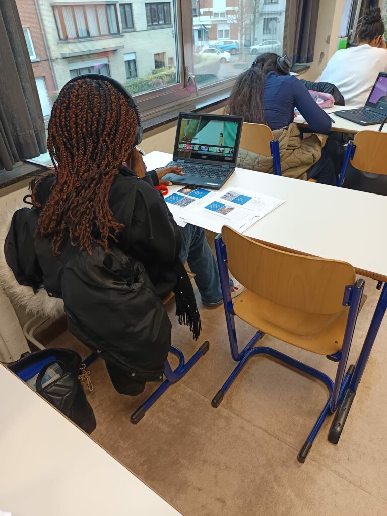 Munis d’un ordinateur, les élèves ont consulté et analysé différents types de documents : textes, témoignages vidéo, ressources explicatives… Certains témoignages, présentés en néerlandais avec sous-titres français, leur ont permis à la fois de comprendre des parcours migratoires variés et de renforcer leurs compétences linguistiques.