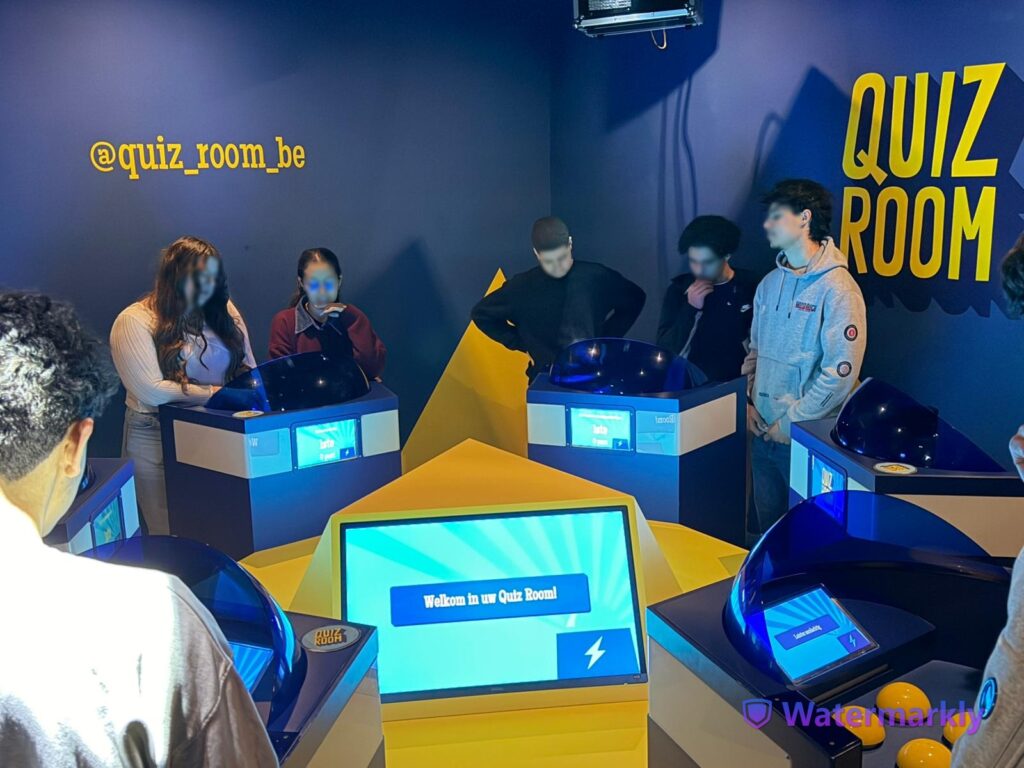 La matinée a débuté par une visite au Quiz Room Bruxelles, où les élèves ont participé à des quiz inspirés de plateaux télévisés, entièrement en néerlandais. Cette activité ludique et interactive leur a permis de renforcer leur compréhension orale, d’enrichir leur vocabulaire et de coopérer au sein de leur groupe dans un contexte authentique.