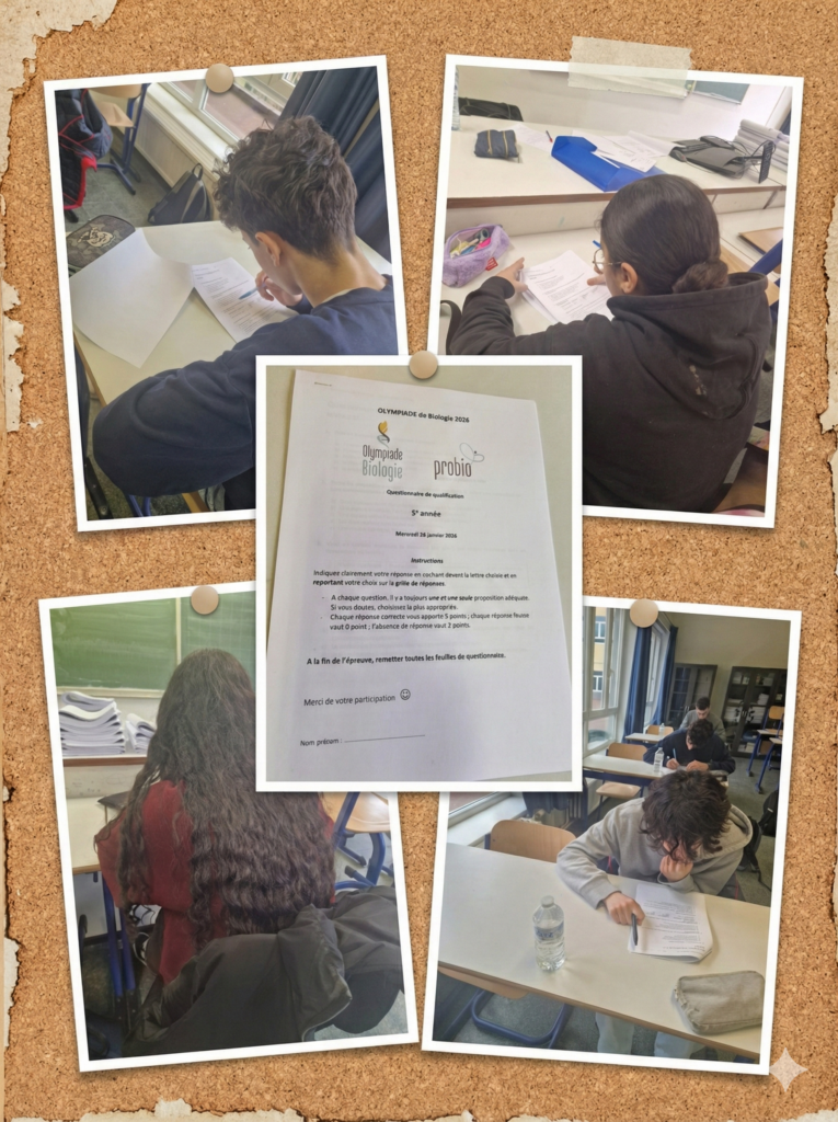 Mercredi 28 janvier, les élèves de 5G et 6G ont participé aux épreuves éliminatoires de biologie des Olympiades de sciences. Cette compétition nationale s’adresse aux élèves motivés par les disciplines scientifiques et désireux de mettre à l’épreuve leurs connaissances et leur raisonnement.
