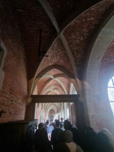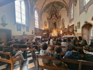 La journée s’est poursuivie au Moyen Âge, à l’Hôpital Notre-Dame à la Rose de Lessines, fondé au XIIIe siècle et resté en activité jusqu’en 1980. Ce lieu exceptionnel a permis aux élèves de mesurer l’évolution des pratiques médicales au fil des siècles, tout en découvrant l’organisation d’un hôpital médiéval.