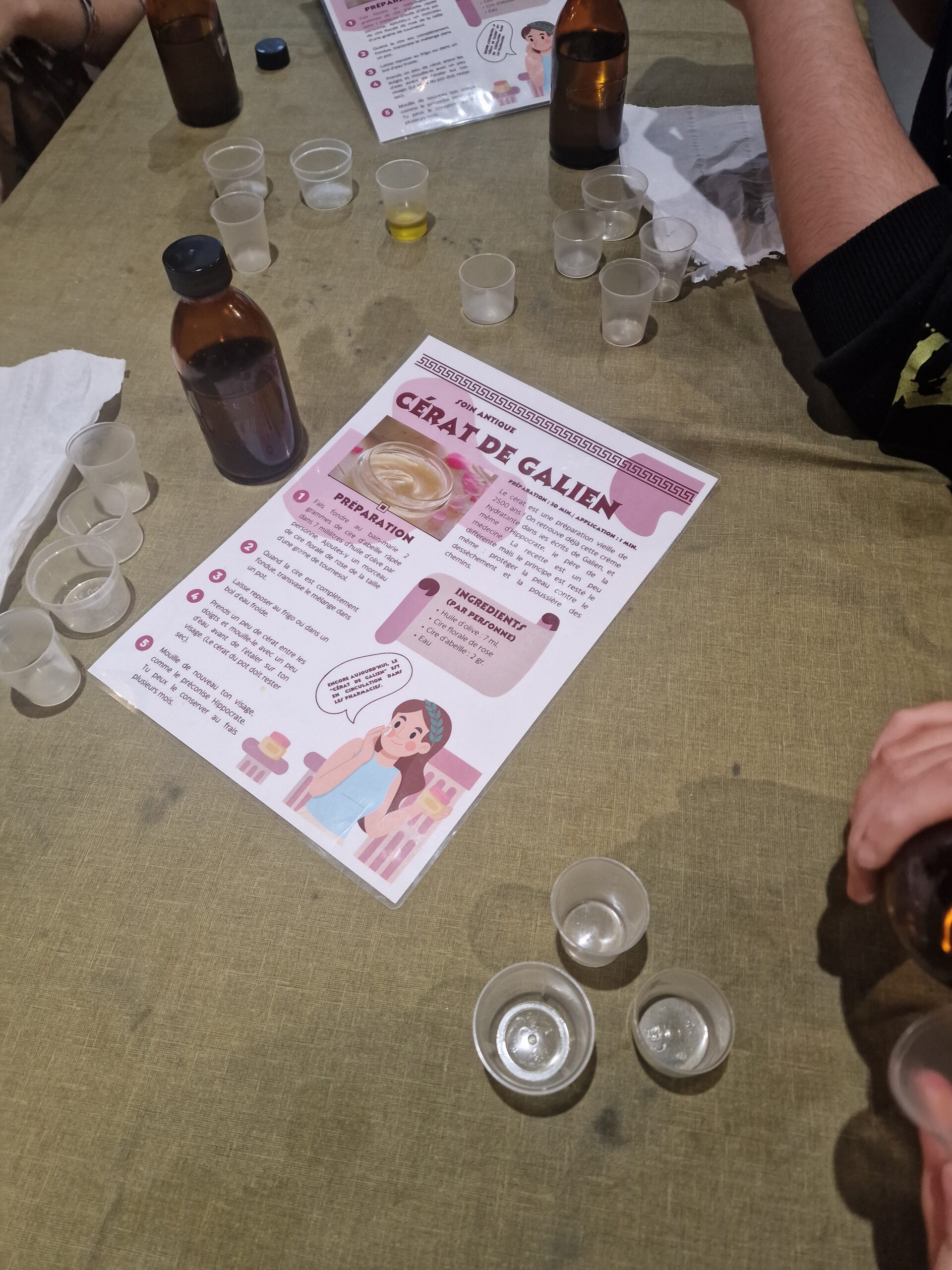 Mais l’histoire ne s’est pas limitée à la théorie : nos latinistes sont passés à la pratique ! Ils ont fabriqué eux-mêmes deux produits de soin en suivant des recettes antiques, expérimentant ainsi concrètement les techniques et les ingrédients utilisés il y a près de deux mille ans.