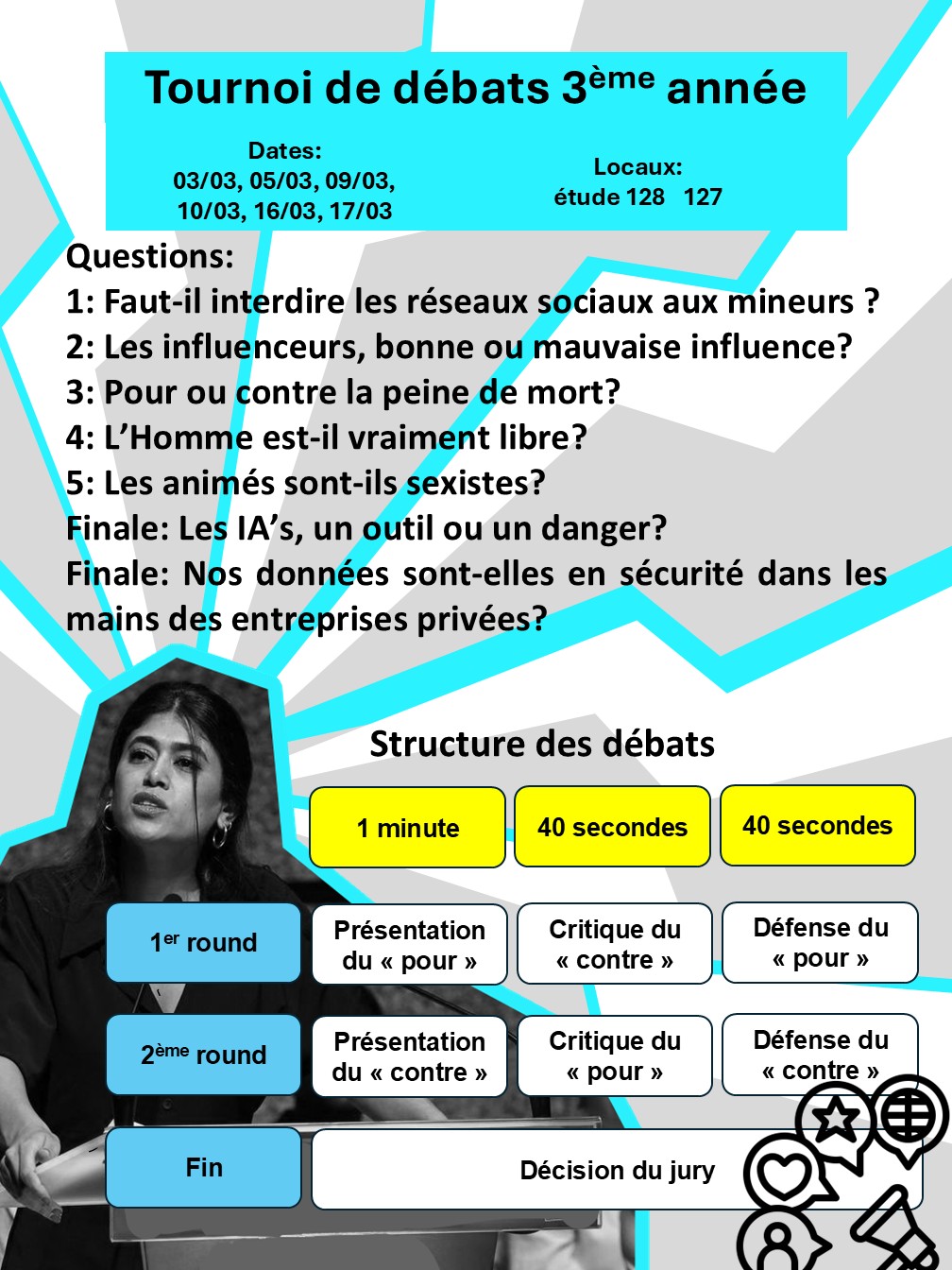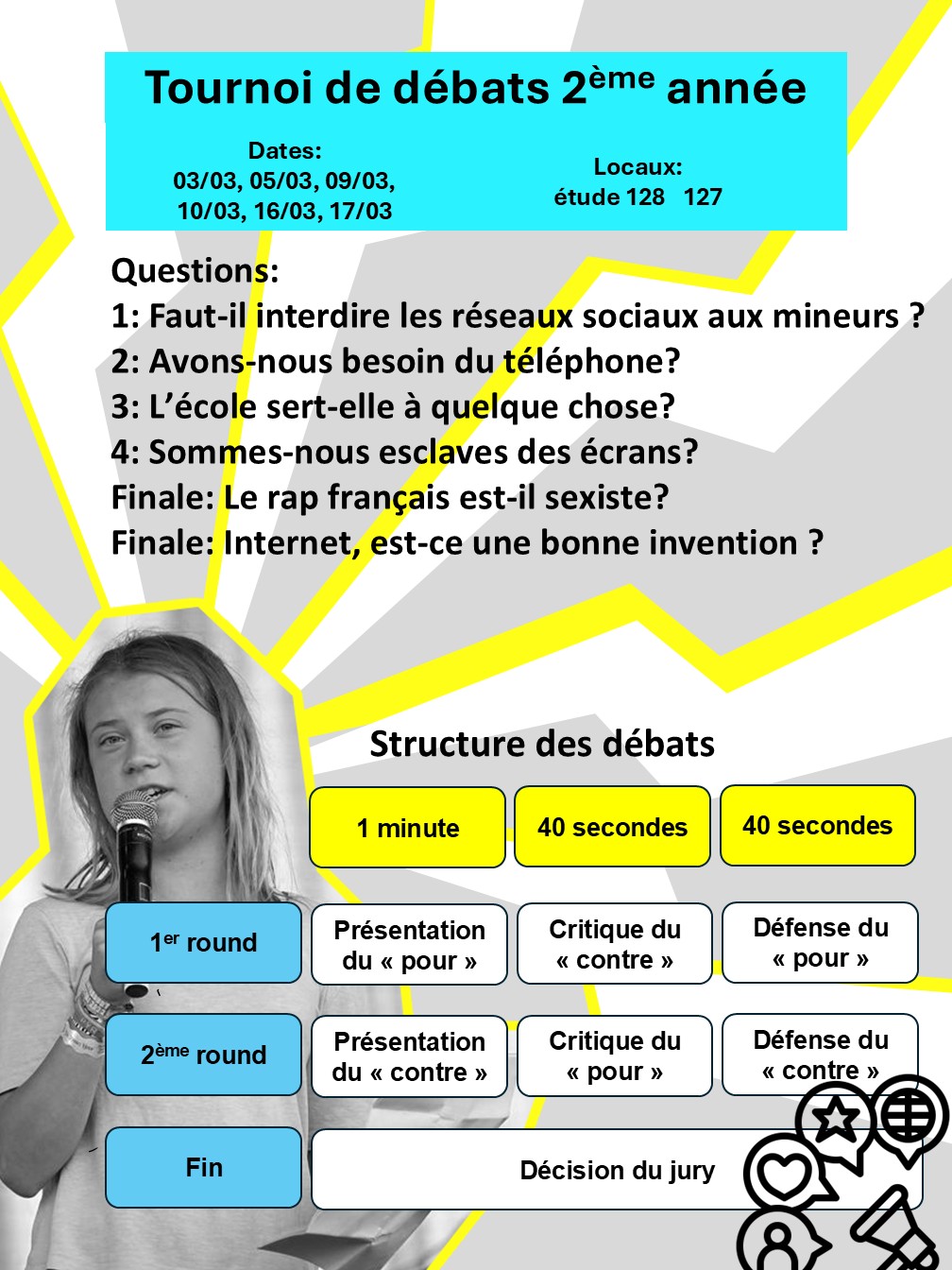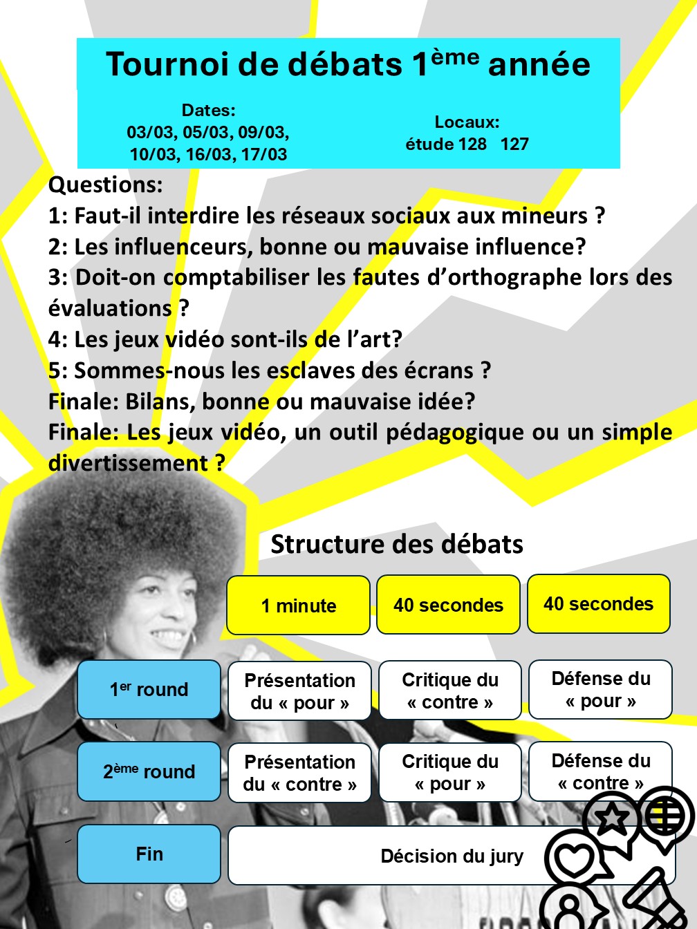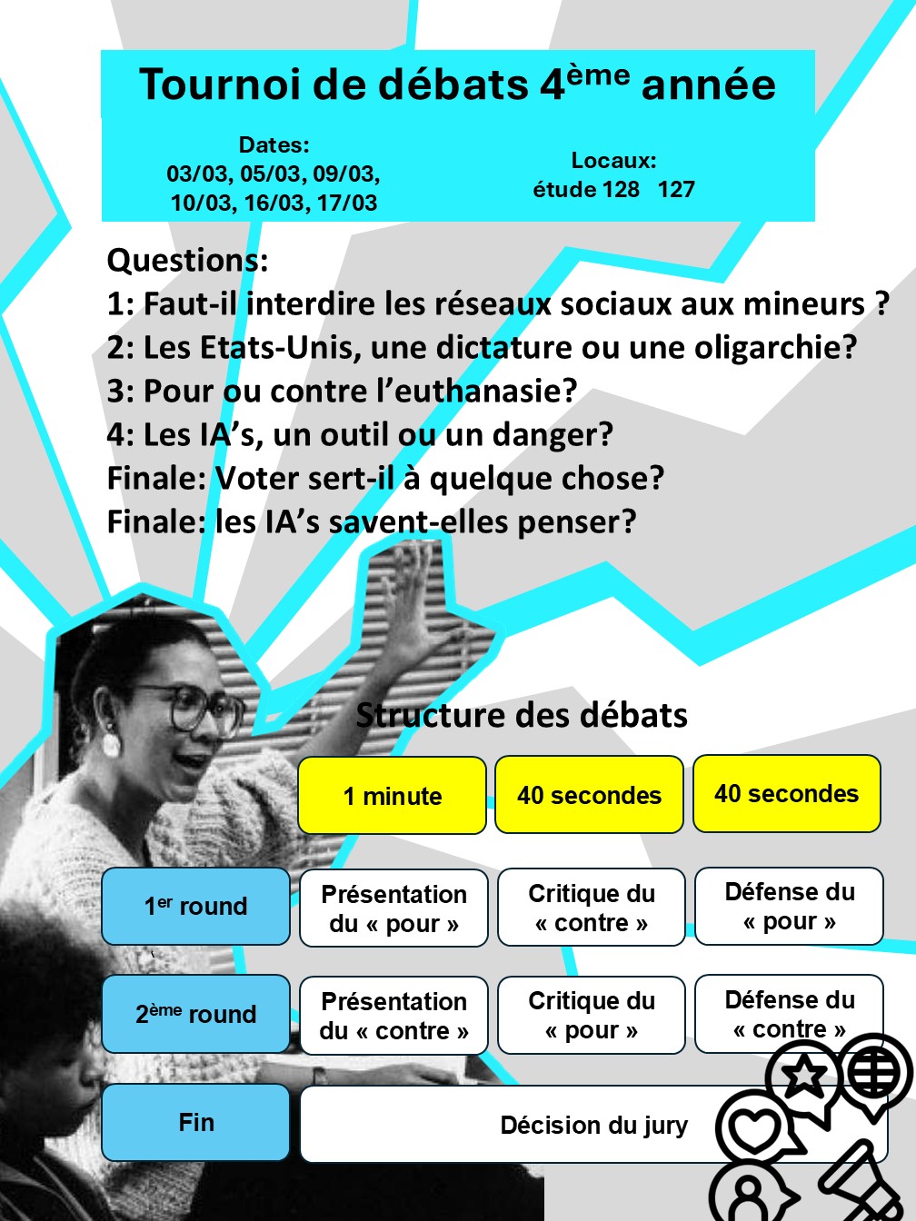 Lundi 8/2 et mardi 9/2 : Tournoi de débats (délégués)