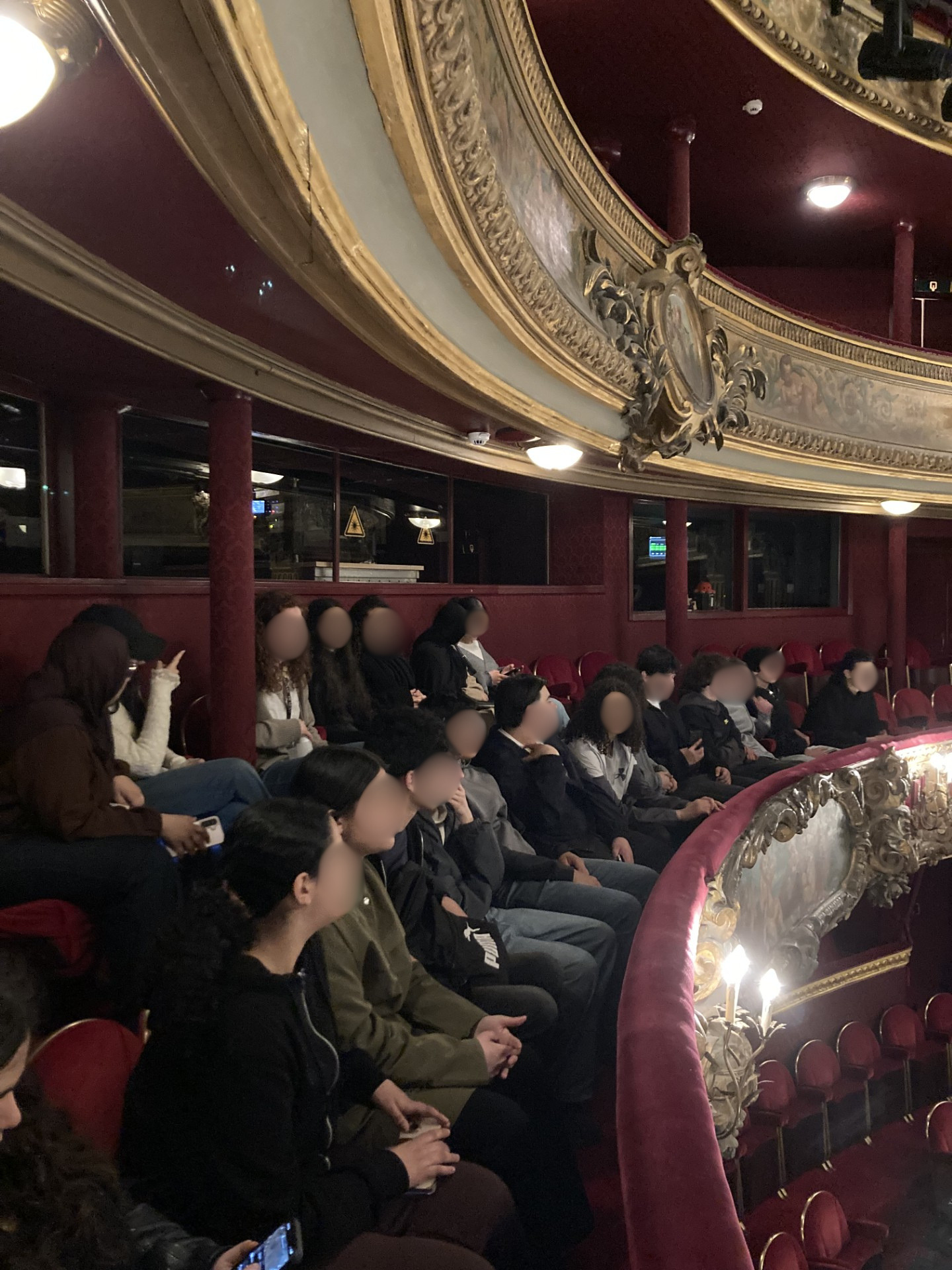 Après ces efforts artistiques, le groupe a eu le privilège de pénétrer dans la majestueuse Grande Salle. Au-delà de l’esthétique des lieux, ce fut une véritable leçon d’histoire : c’est ici même, lors d’une représentation en 1830, qu’a débuté la révolution belge !