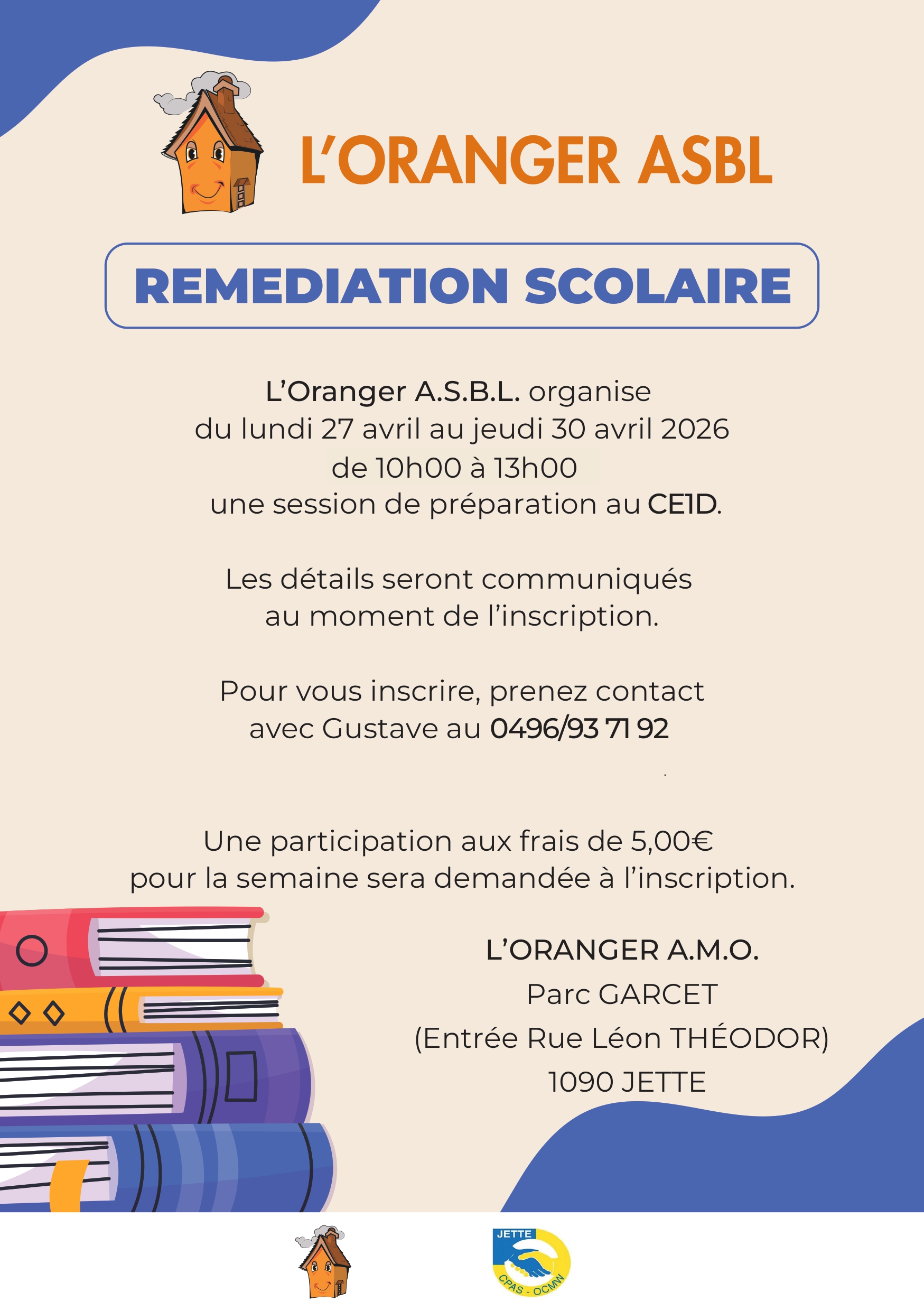 Dans le cadre d’un projet de remédiation scolaire financé par le CPAS de Jette , l’ASBL L’Oranger organise une session intensive pour accompagner les élèves de toutes les écoles secondaires habitant ou étant scolarisés sur la commune de Jette.