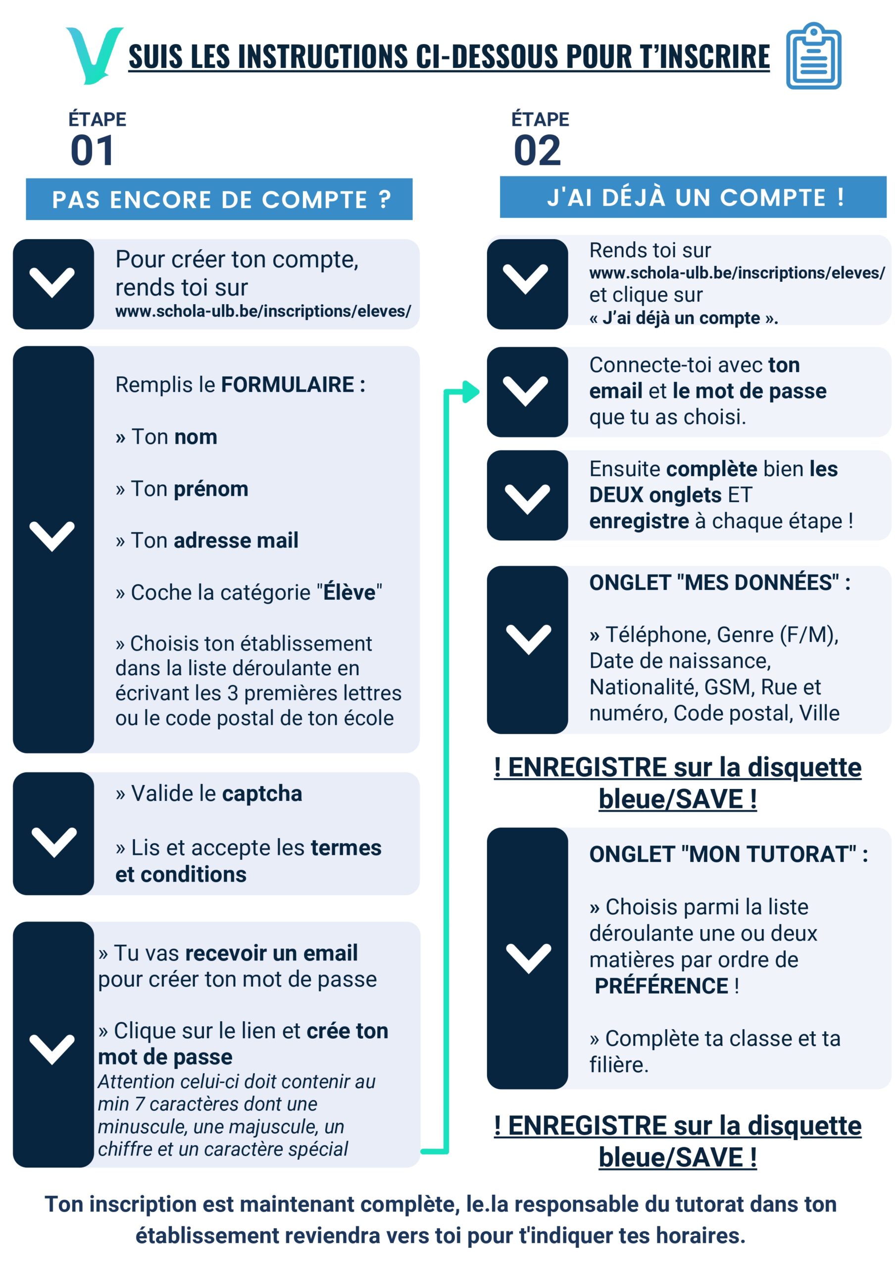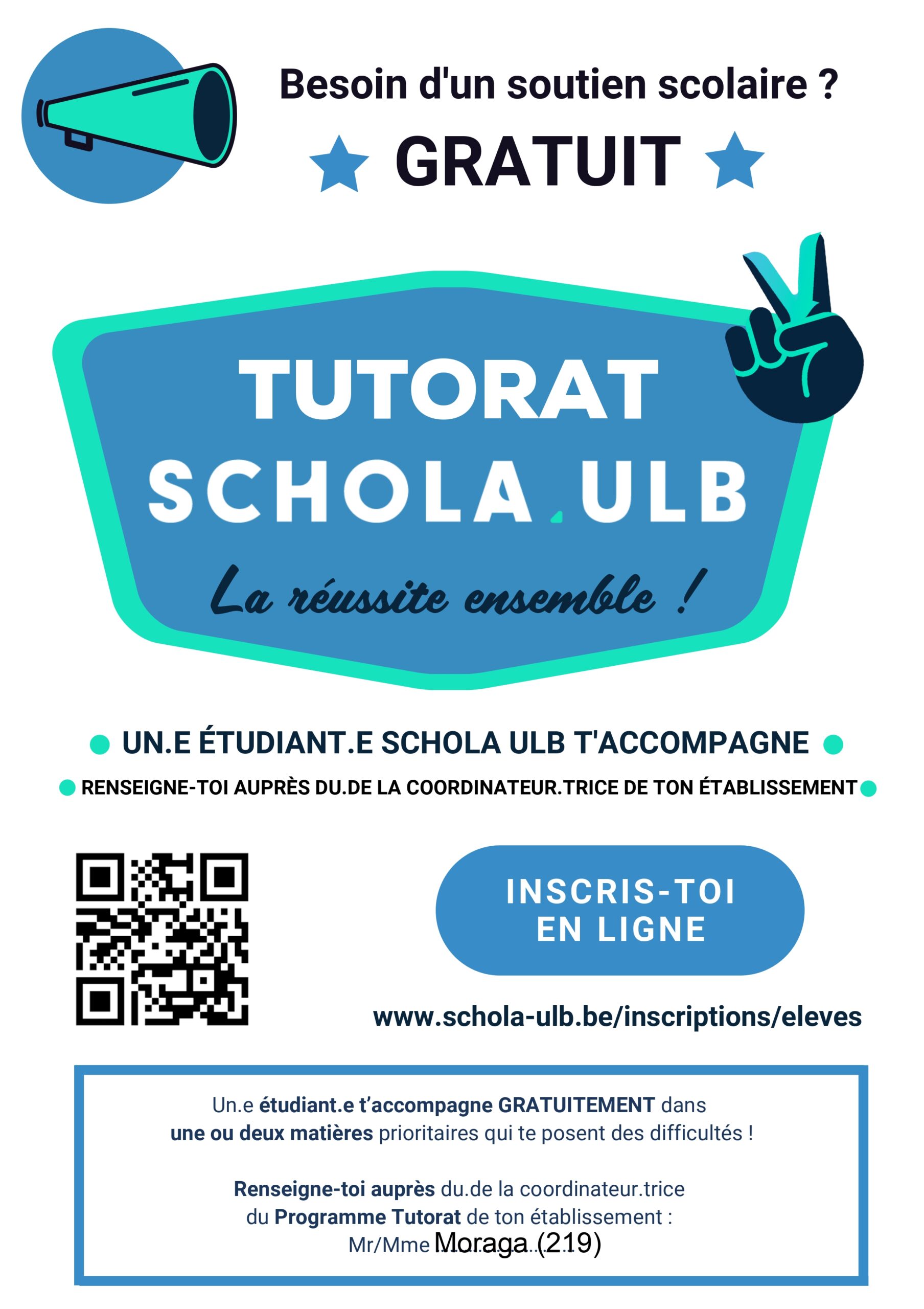 | Comment s’inscrire ? | En scannant le QR code ou à l’adresse : www.schola-ulb.be/inscriptions/eleves |